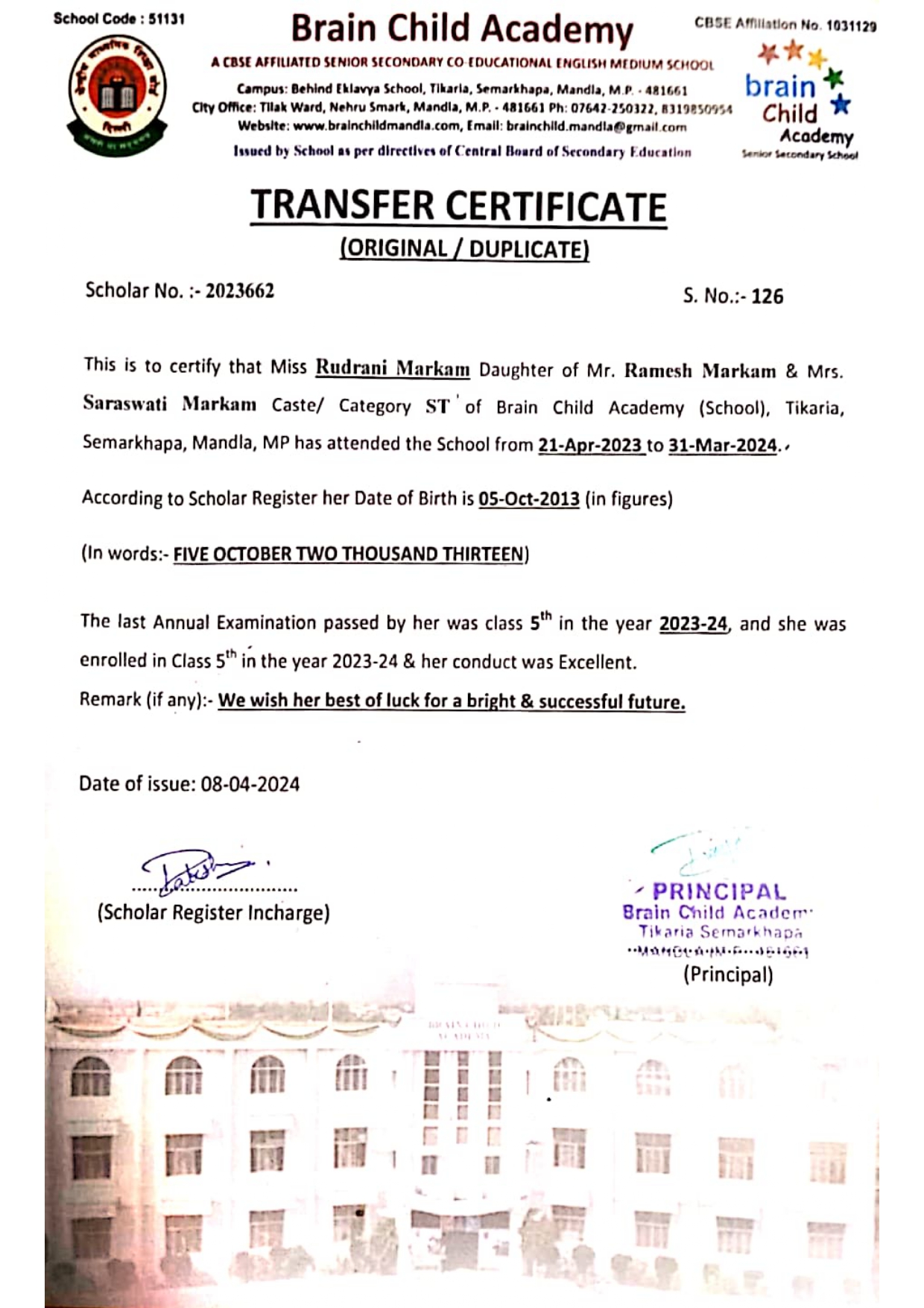 CBSE Affiliation No. is 1031129